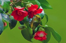 동박새와 동백꽃.