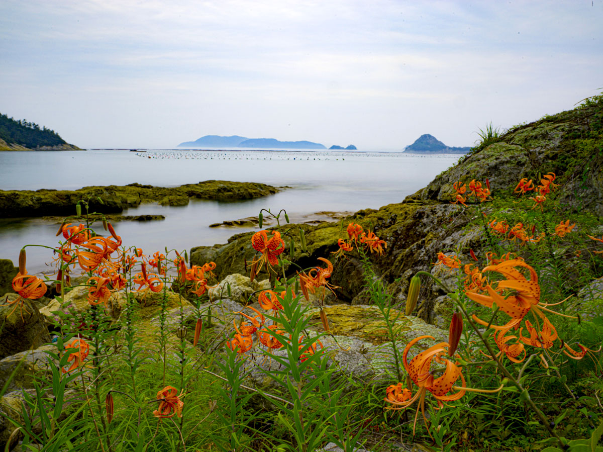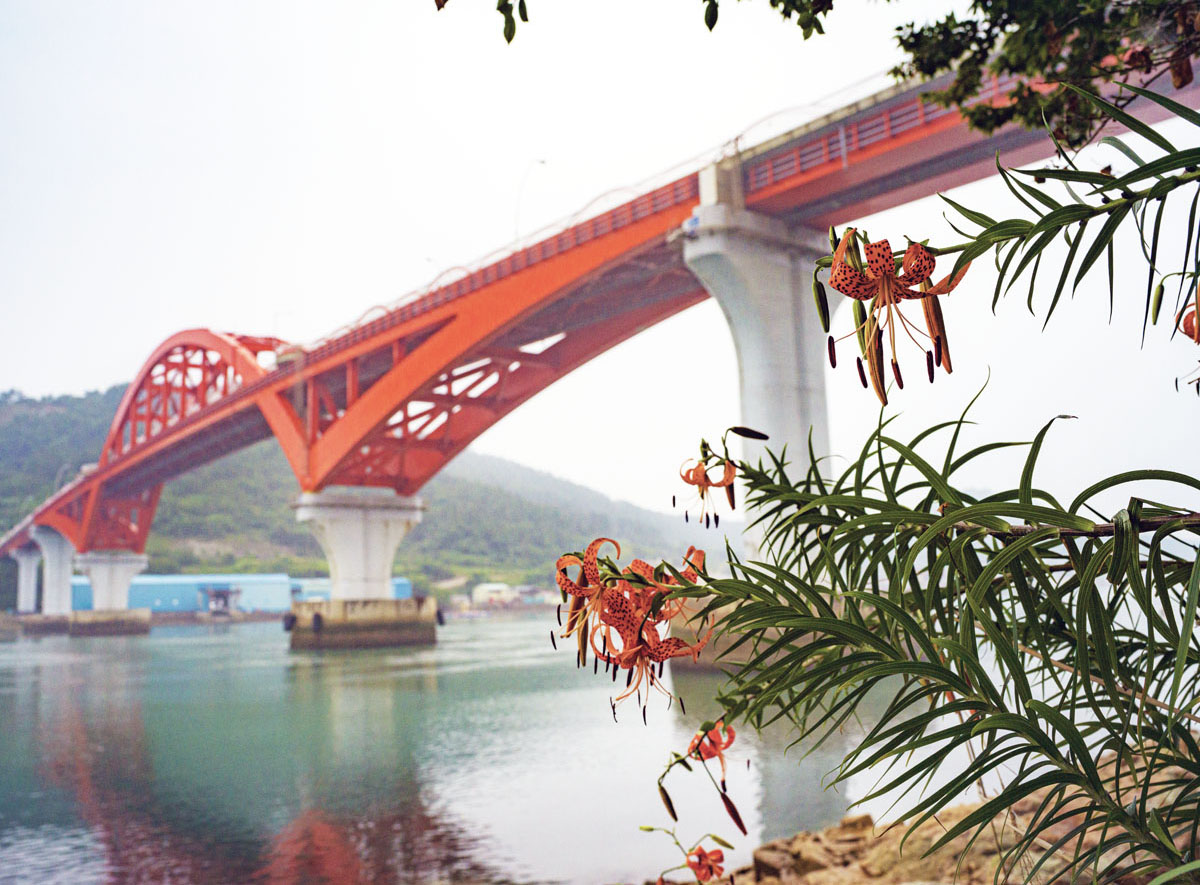 국내갤러리 | 완도 보길도 참나리꽃과 보길대교.