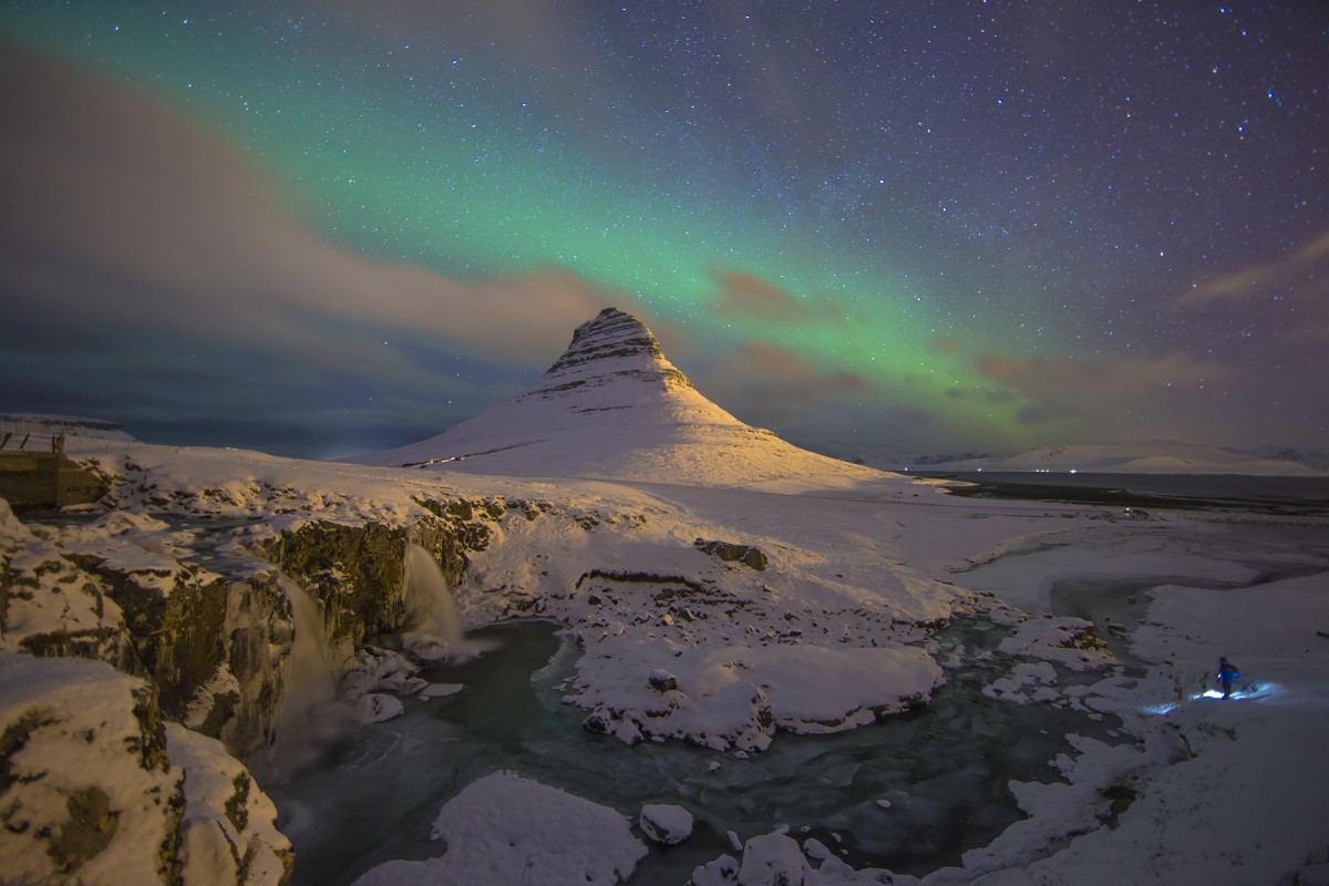 Kirkjufell 산 위로