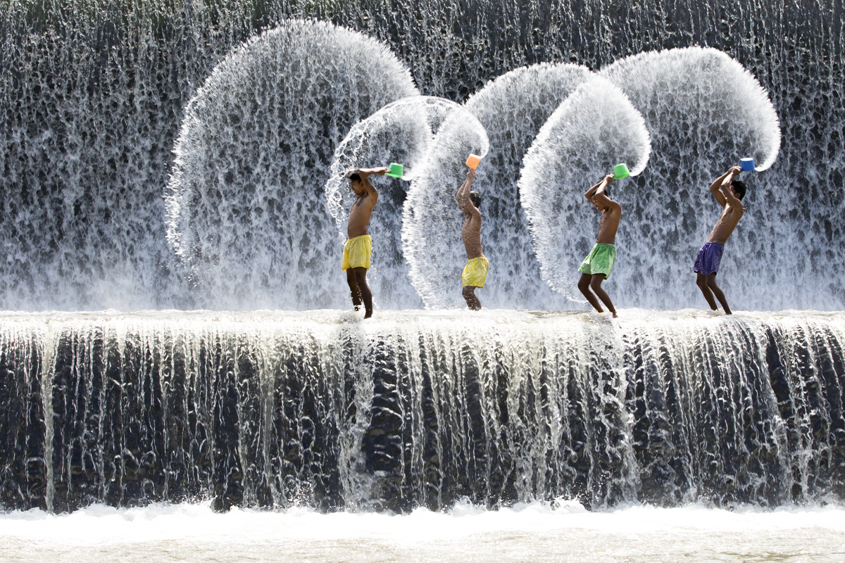 바가지로 물을 뿌려 그림을 그리듯 여러 가지 모양을 만드는 모습이 신기하고 멋졌습니다.