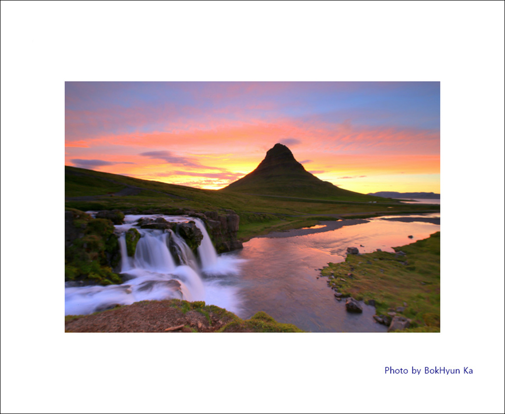아이슬란드의 백야 시즌엔 일몰과 일춤이 이어져 붉은 색 톤의 하늘빛이 오랜 시간 동안 계속 된다.