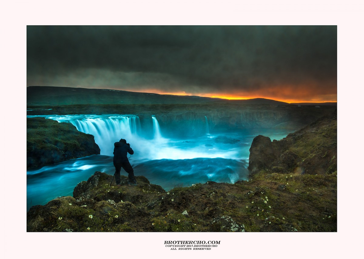 먹구름이 뒤 덮힌 GODA FOSS 절벽 끝에서 비를 맞으며 .....