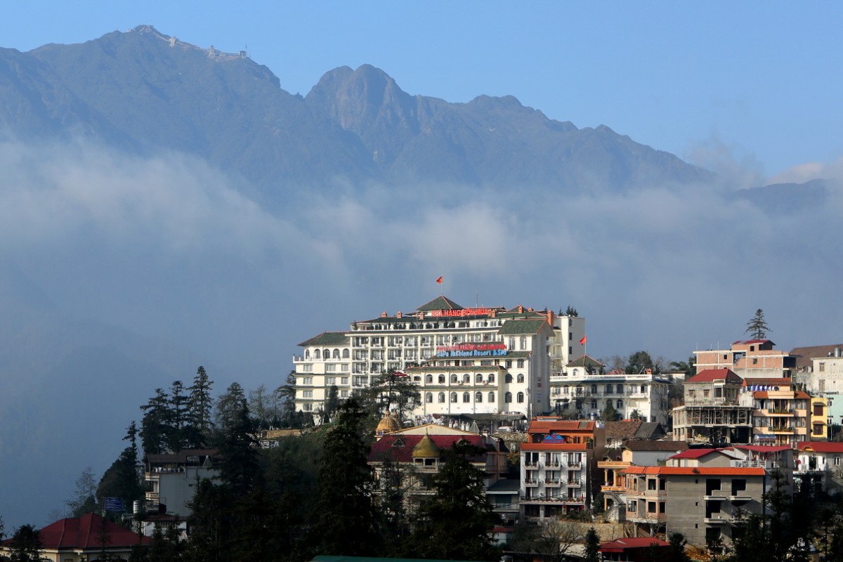 아침 일출 포인트 지점과 사파에서 바라본 판시판(3.143m)정상 케이블카 타워모습