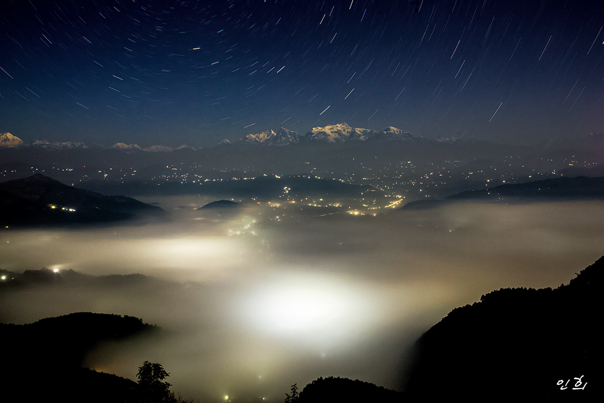 안개낀 도심과 별들의 향연입니다.