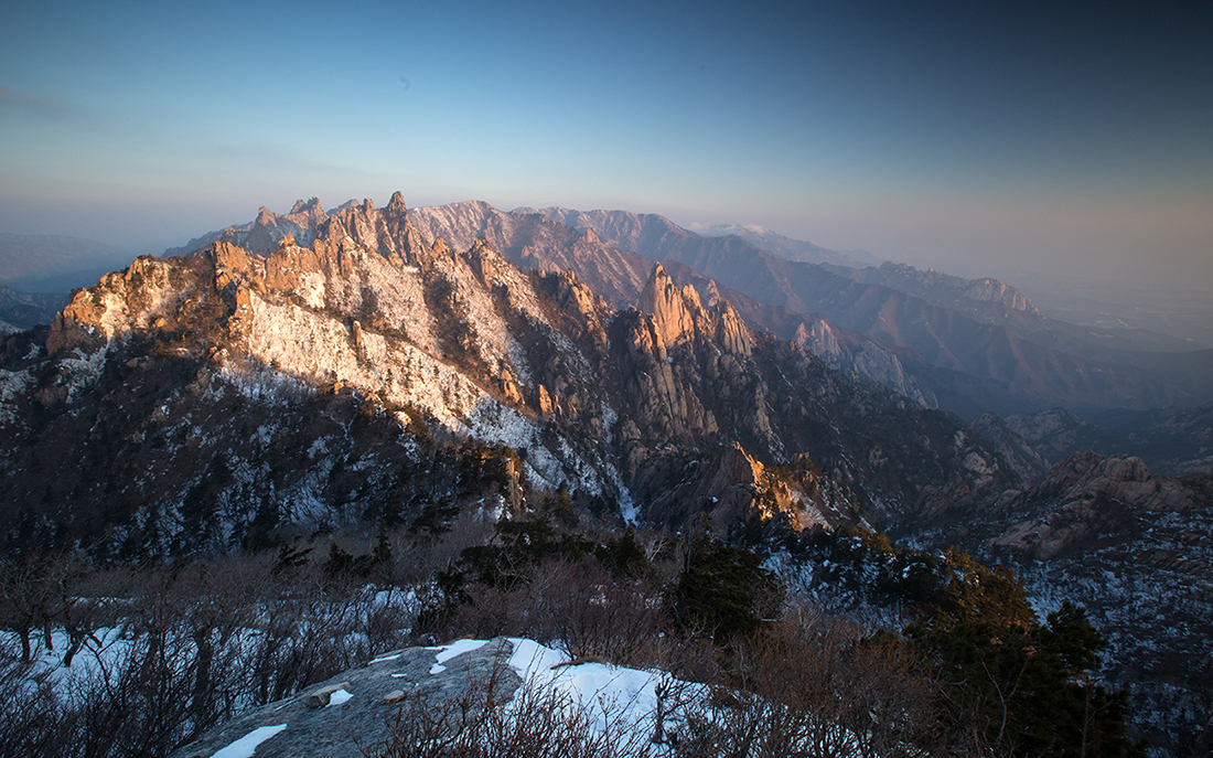 그 높고 험했던 등이 아침 빛을 받으니 만만하게 보이는건
